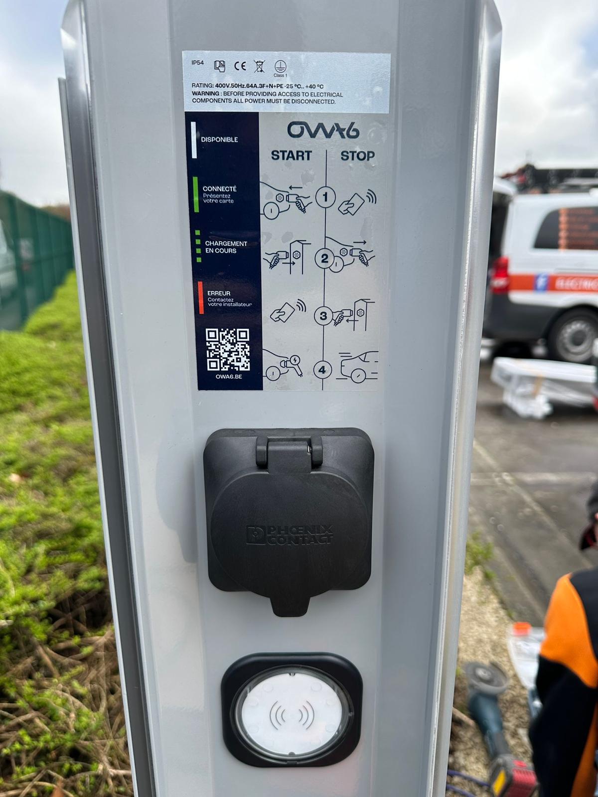 Sur le site Gedimat Thiébaut à Tournai, nous avons réalisé l’installation complète de deux bornes de recharge pour véhicules électriques, afin d’offrir aux clients et collaborateurs une solution moderne, rapide et fiable pour la mobilité électrique.